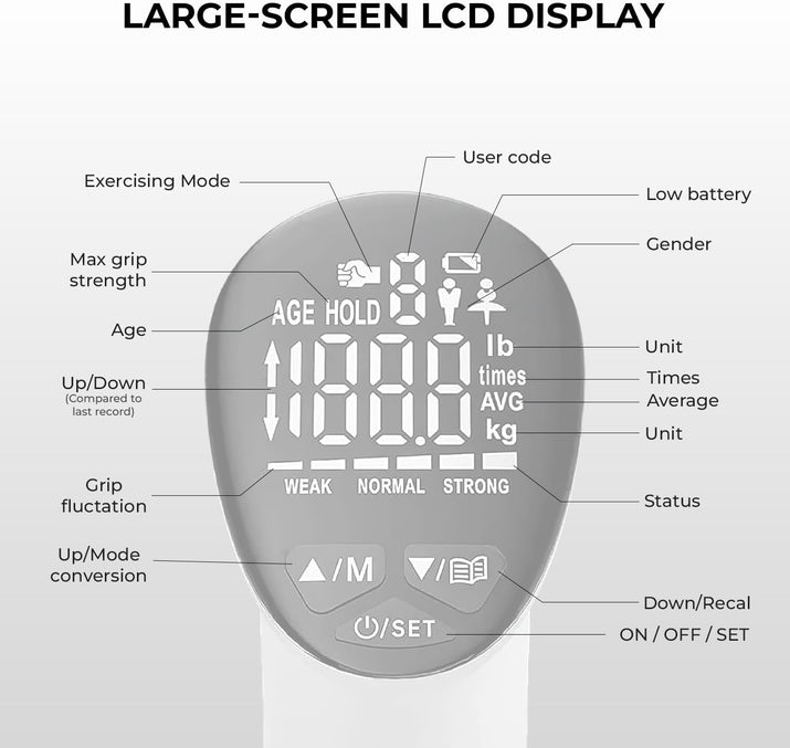 Answer 3: Yes, the device features a backlit LCD screen that provides clear visibility of your grip strength readings, making it easy to monitor your performance both indoors and outdoors.